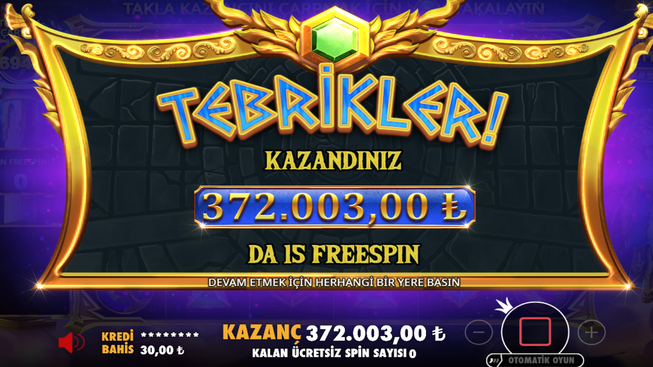 Kullanıcı Adı: aslan43*** Bahis: 15,000.00₺ - Çarpan: 2481x - Kazanç: 372,003.00₺